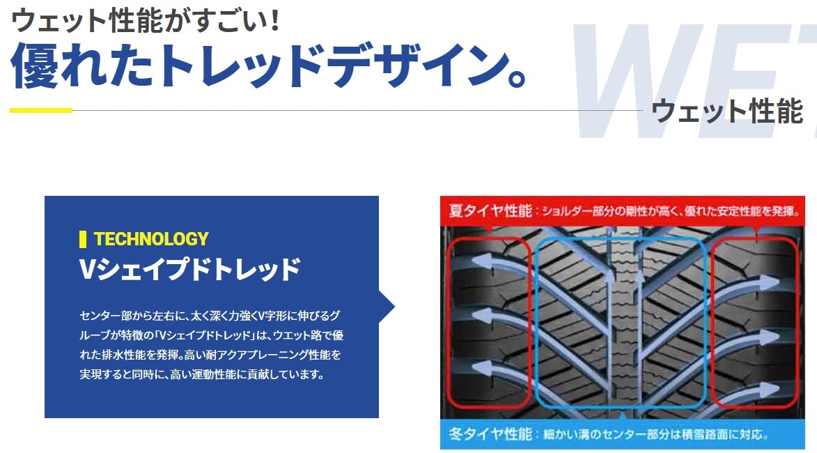 こちらのタイヤは、雪や晴れた路面だけではなく雨の日の濡れた路面など