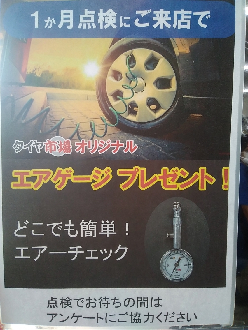 タイヤ市場では、ご購入頂いたお客様に1ヶ月点検をご案内させていただいています。(^^)/