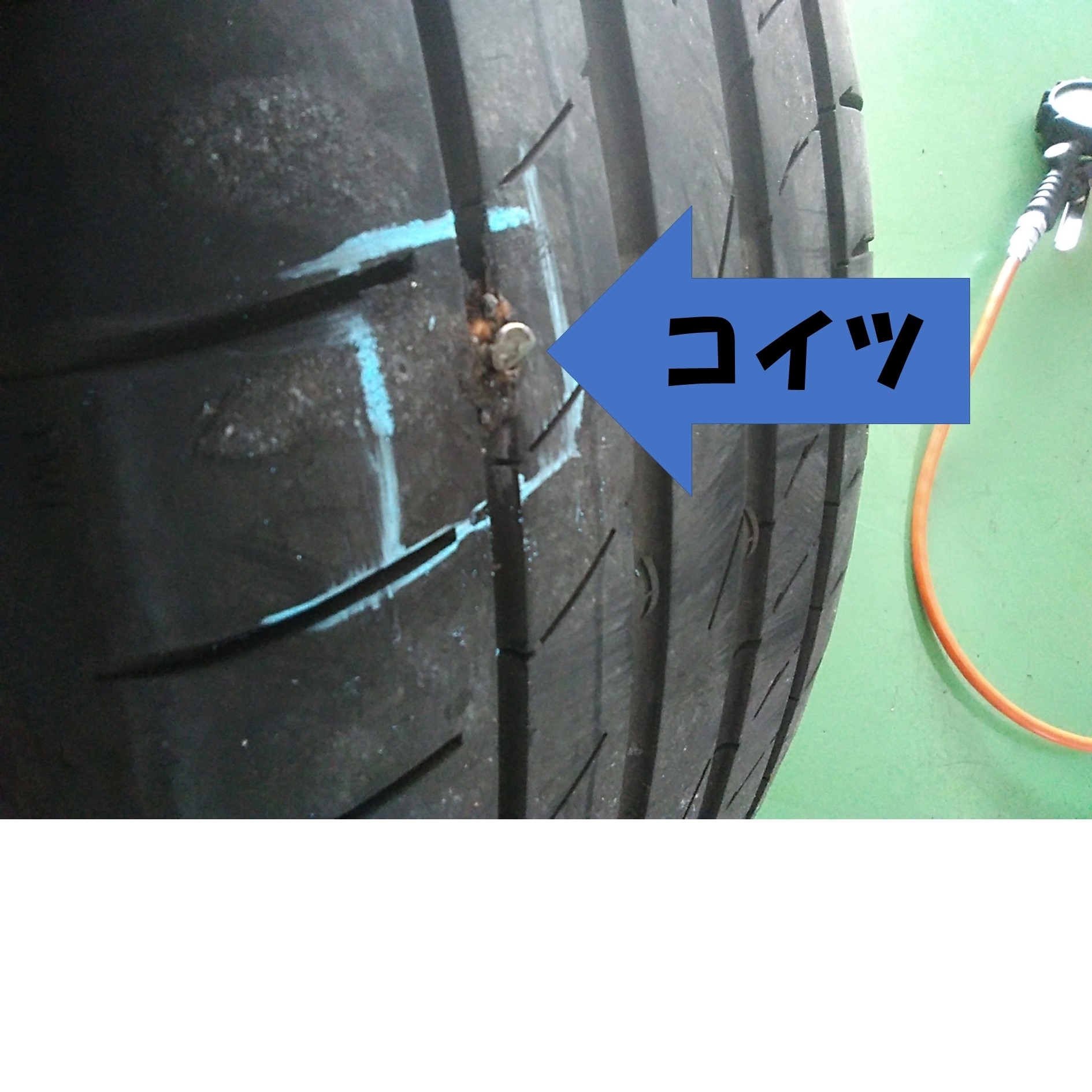 タイヤ市場にパンク点検に来られるお客様のタイヤを見せて頂くと大概コイツ(クギ、ネジ)が刺さってますからね