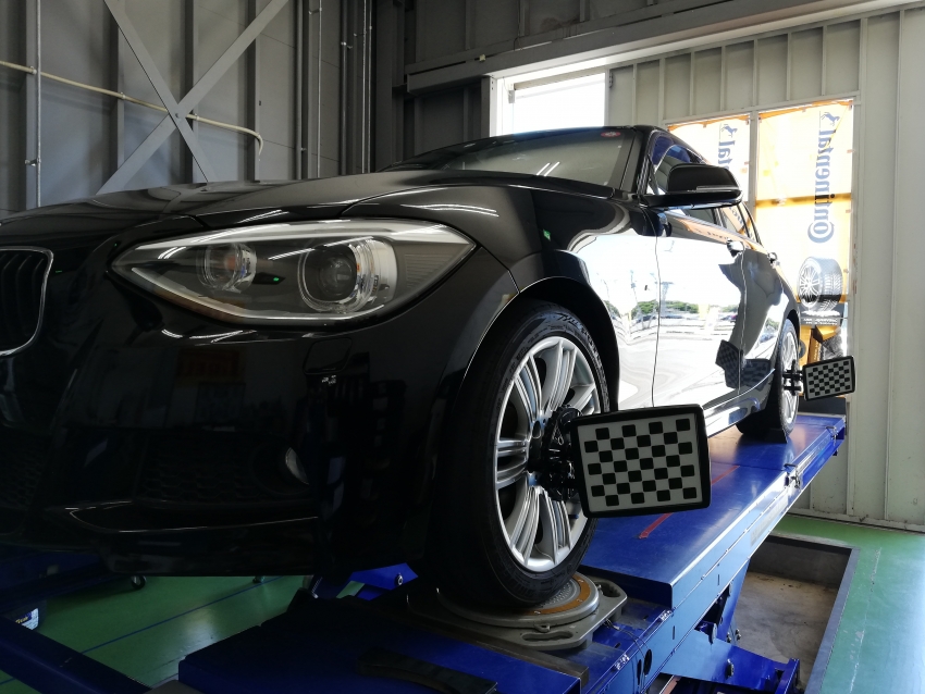 今日はフロント左側が外減りしてしまうというBMW 120iを調整していきます。