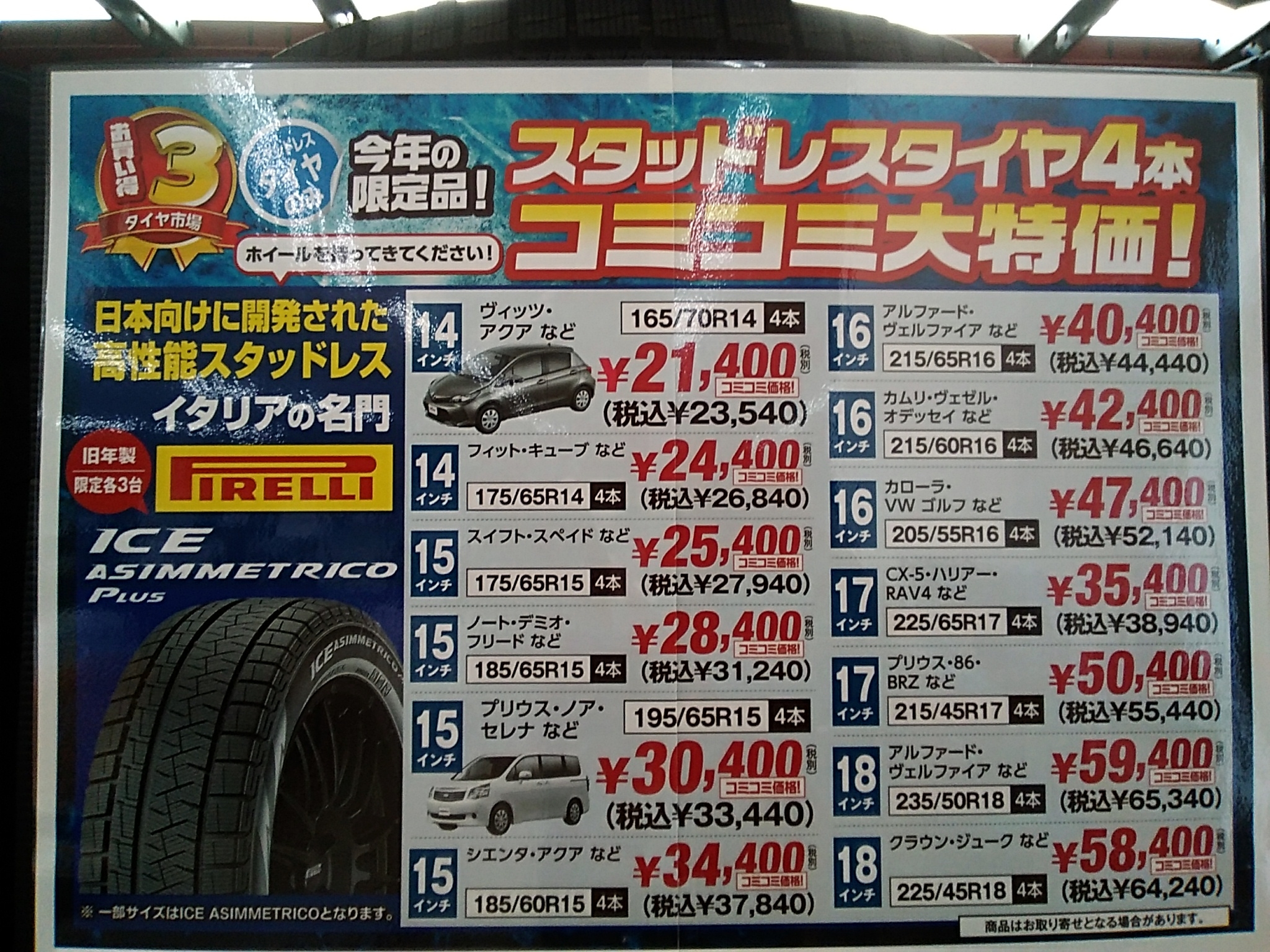 今、旧年タイヤが安い!!