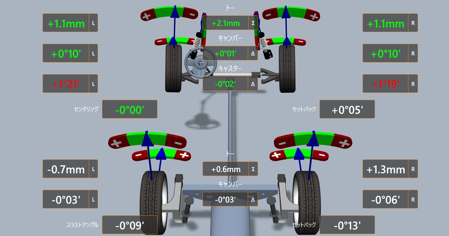 フロント周りは全項目調整可能なので要アライメントですね。