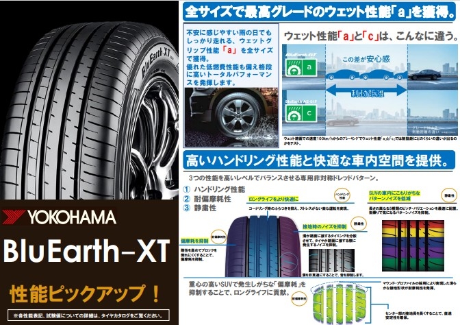 ヨコハマから出ているブルーアースXTというSUV向けタイヤです!