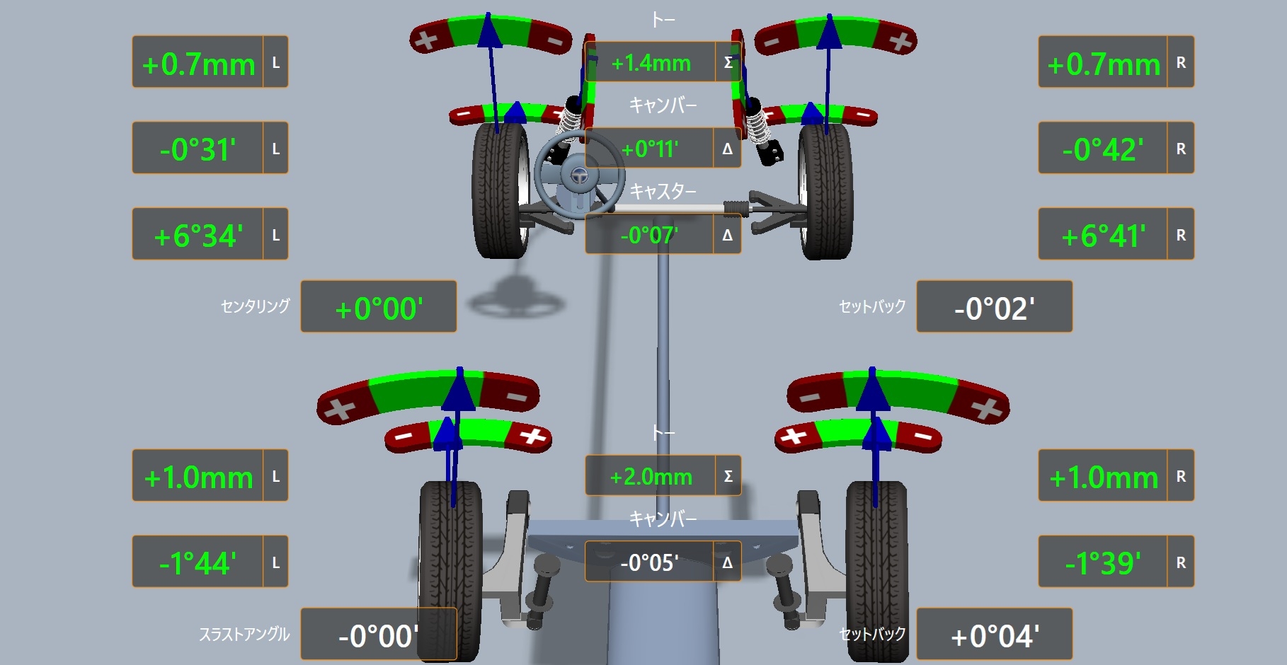 連動して少しキャンバーも動きますが基本はトーのみですね。