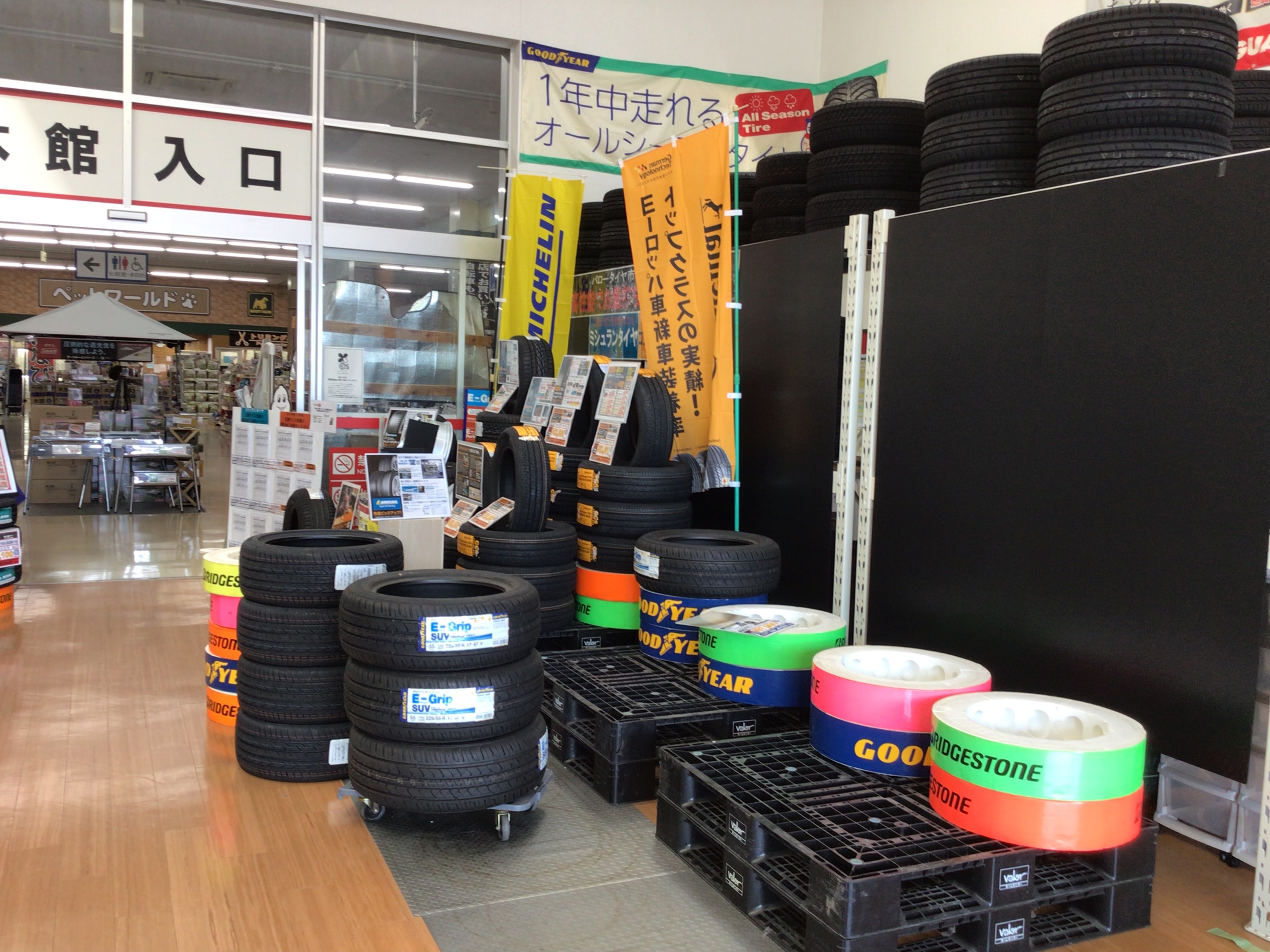 ただいま、瑞浪中央店タイヤ市場では次のチラシセールに向けた売場変更をスタッフ総出で頑張っています(⌒-⌒; )