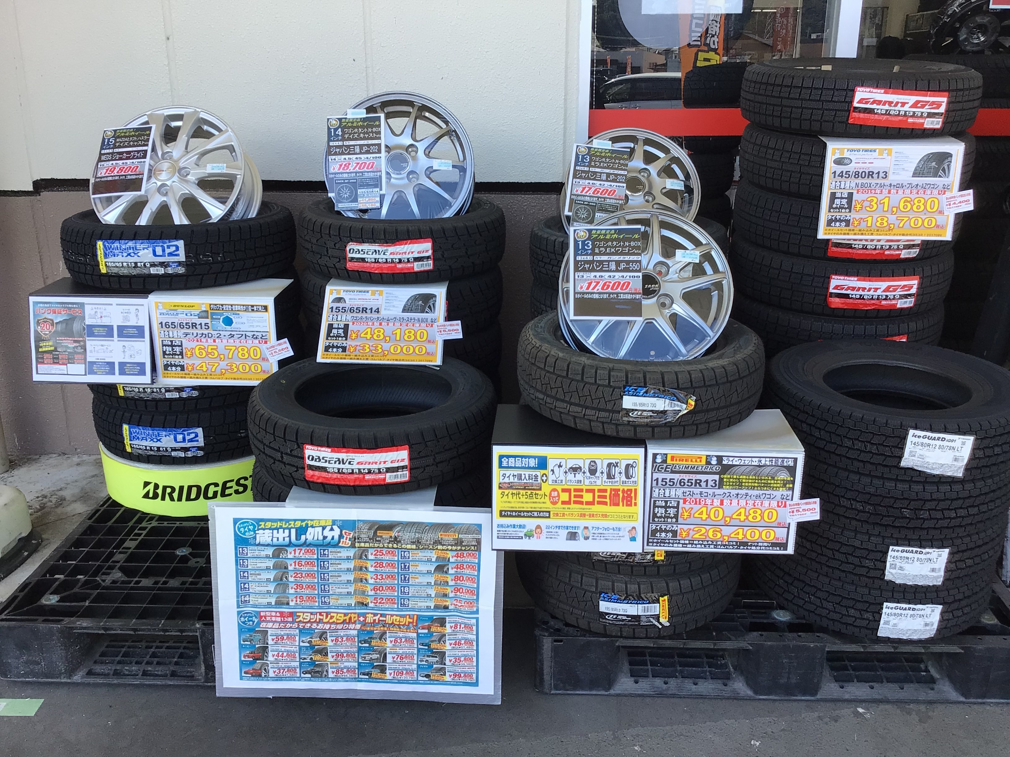 倉庫のスタッドレスタイヤをドーンと