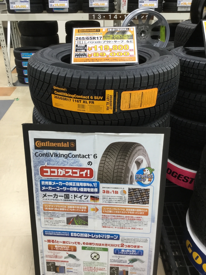 コンチネンタルCVC6です。氷雪性能はもちろんドライ路面性能もバランスよく兼ね備えた自信作です。