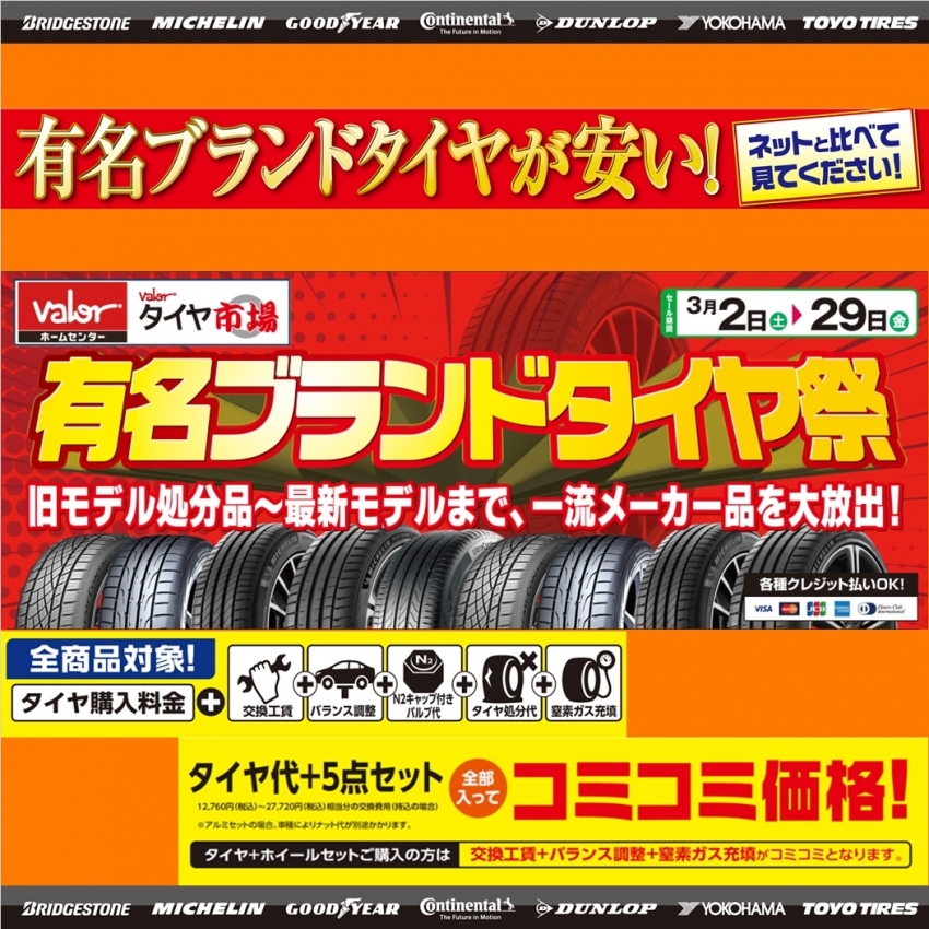3月2日より、"有名ブランドタイヤ祭"開催中です!!