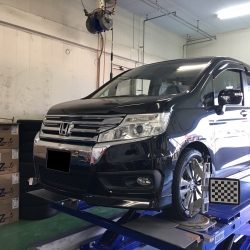 リアは調整不可の車両ですので、そのままですがフロントはメーカー基準値内にしっかり収め