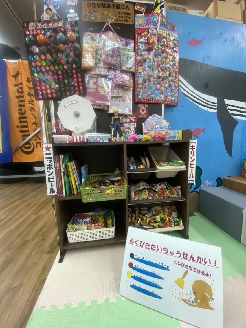『キッズスペース』&『駄菓子屋さん』&『くじ引き』&『塗り絵』コーナーを設置しました\(^o^)/
