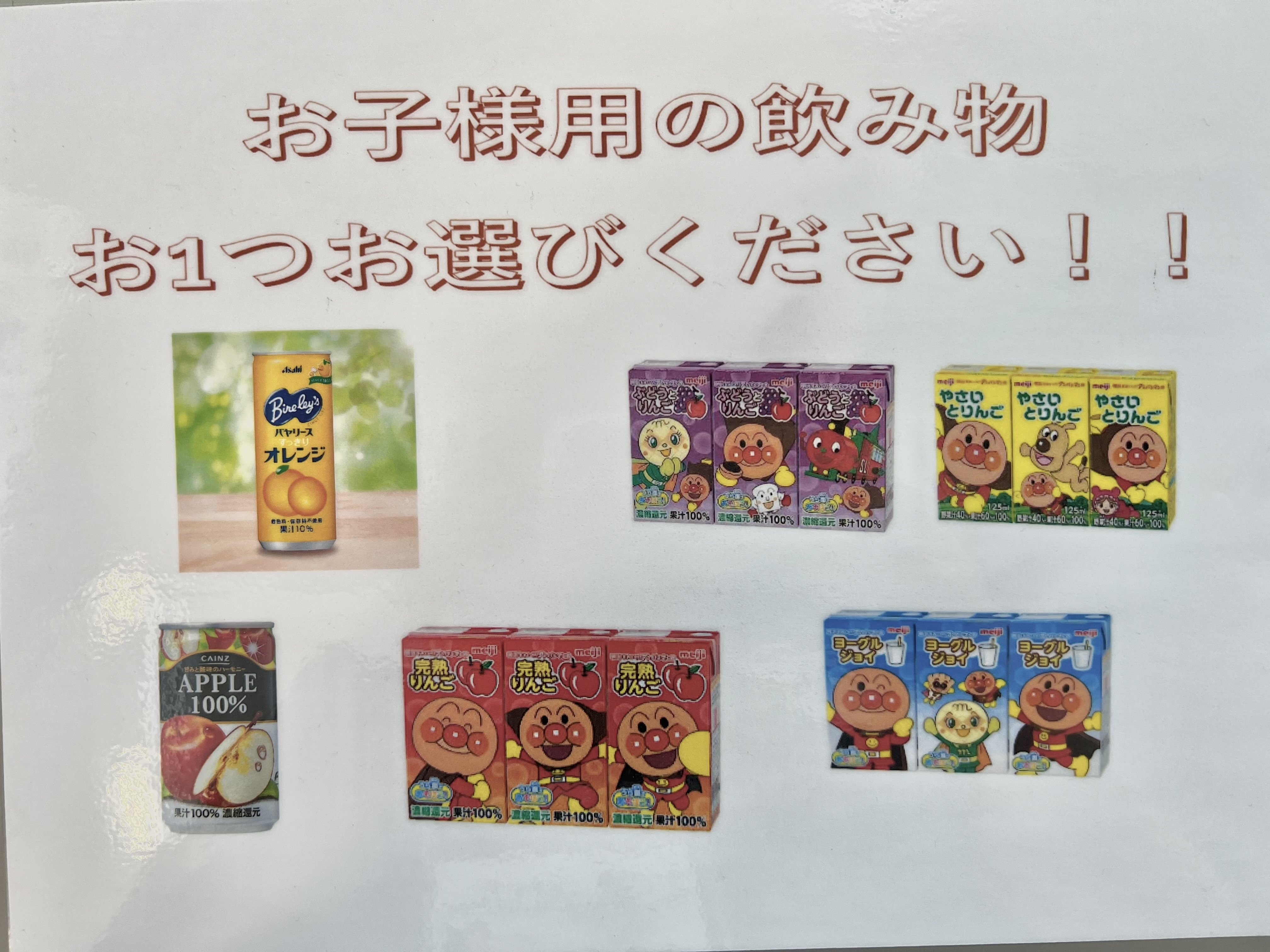 また、お子様用のお飲み物