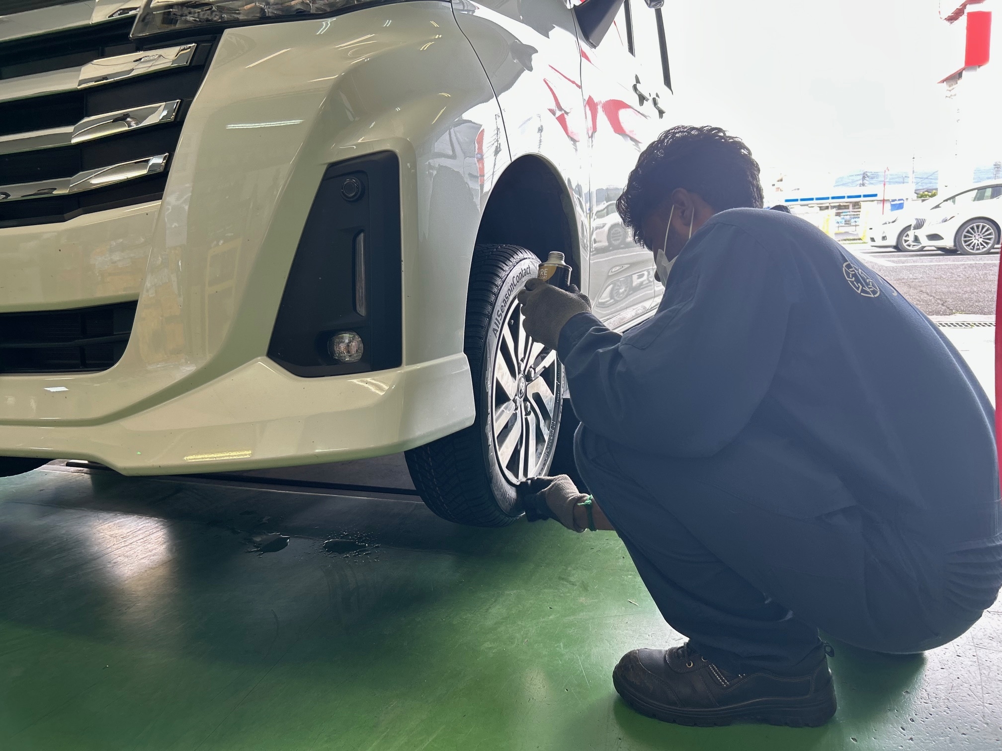 タイヤのフィルムコートも塗布し、