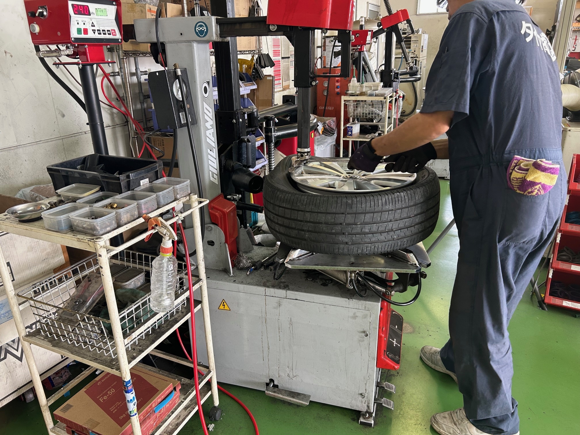 バランス調整後、車にタイヤを