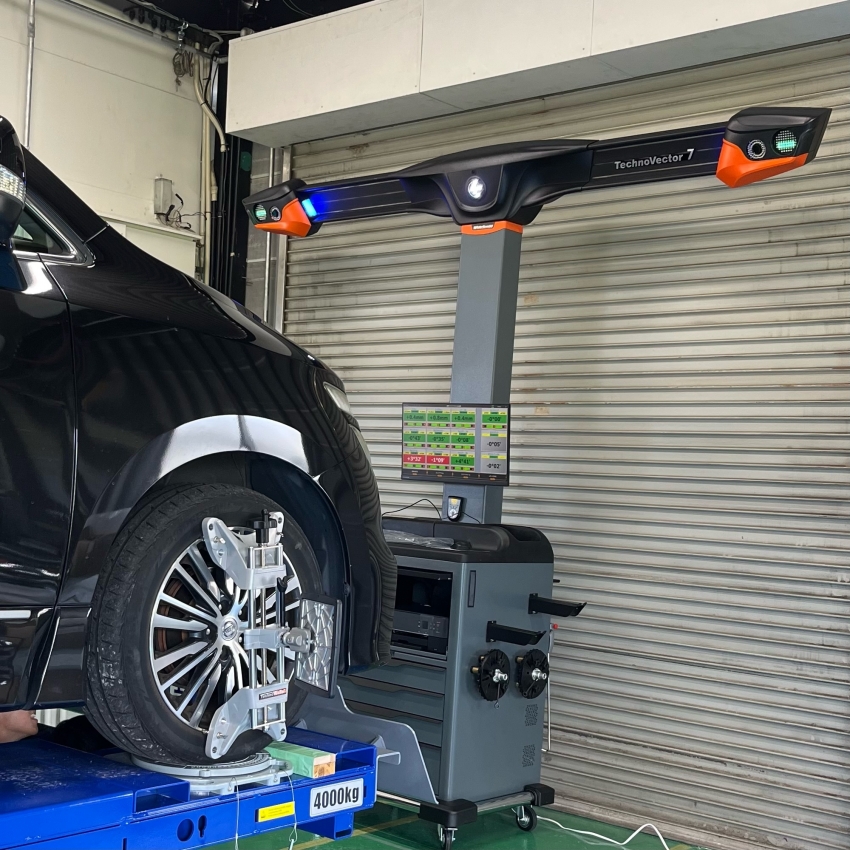 お客様のお車の測定の前に、スタッフの車で機械に問題がないか、測定・調整の順序の再確認を行いました!