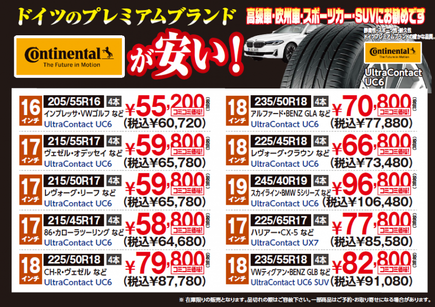 今日のおすすめのタイヤは、ドイツのプレミアムブランドである CONTINENTAL です。