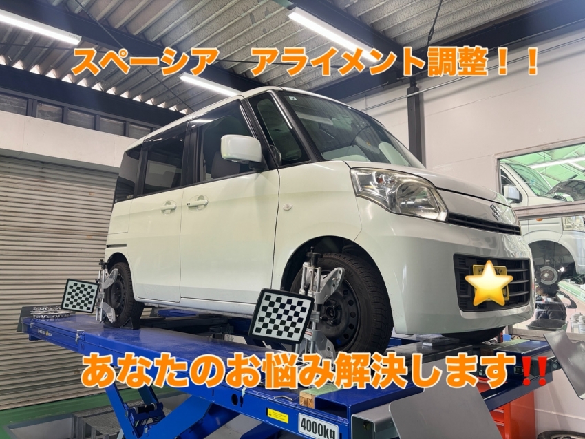 スズキ・スペーシアのアライメント調整!フラつき解消で快適ドライブ♪
