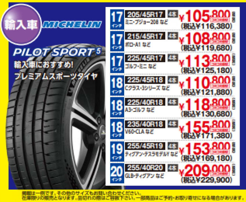 「ミシュランって高いイメージがありますよね?でも、タイヤ市場のチラシ価格なら、国産のスタンダードタイヤに少しプラスするだけで『世界最高峰の走り』が手に入ります。