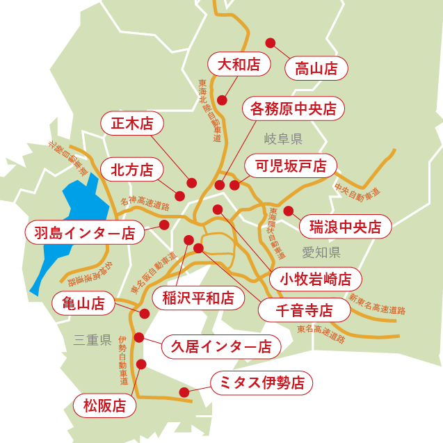 岐阜、愛知、三重と展開拡大中!