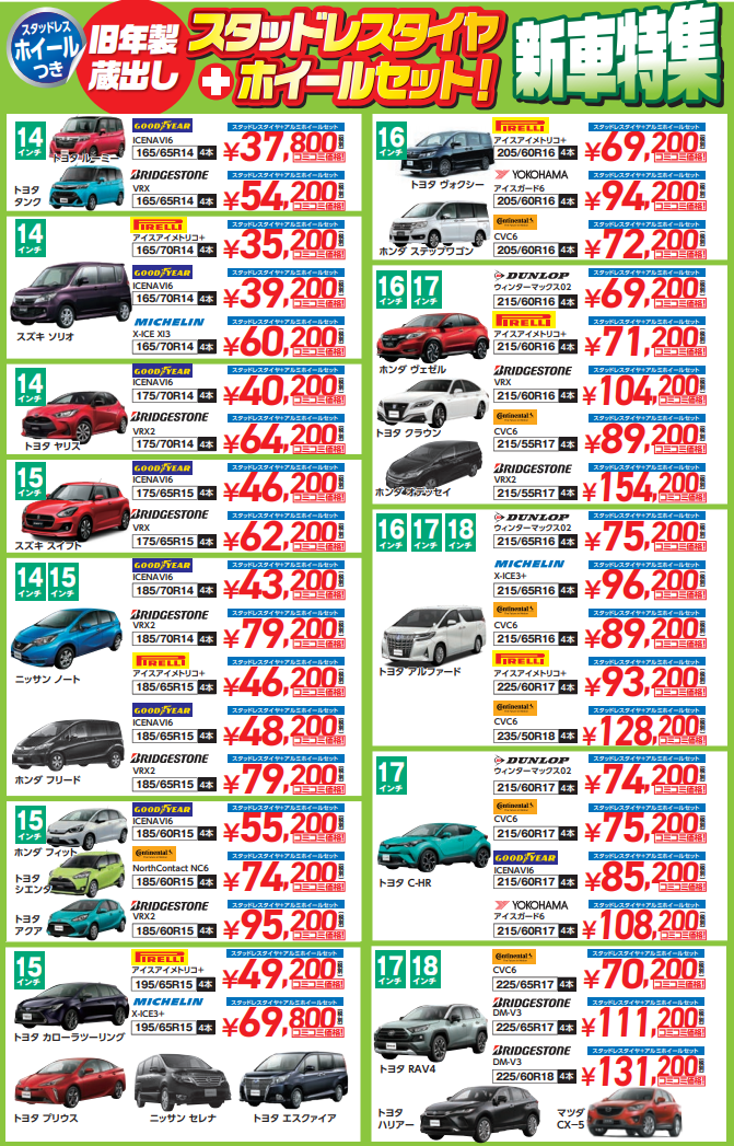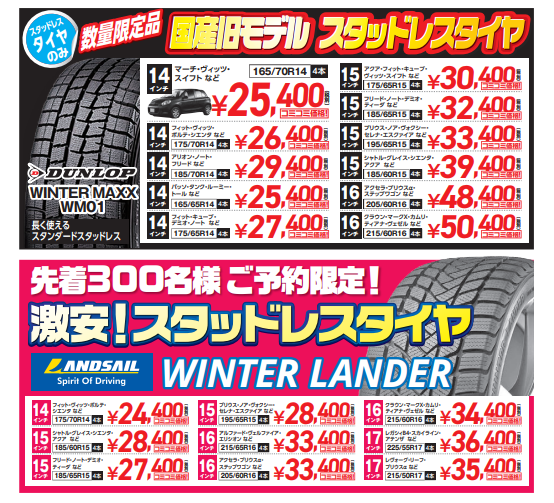 ブリヂストンブリザック、ダンロップウインターマックス等、ブランド限定品や激安スタッドレス等、今しかない「お得商品」多数!!