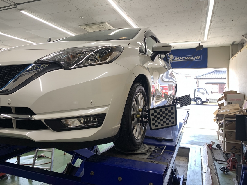 タイヤ・ホイールの取り付け角度を適正に調整する作業のことで