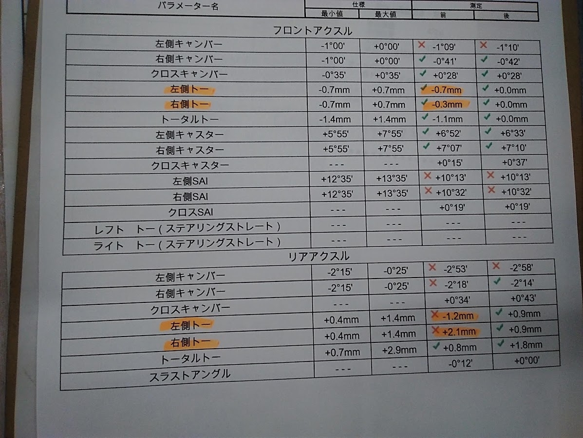 シビックでアライメント作業が入りました!