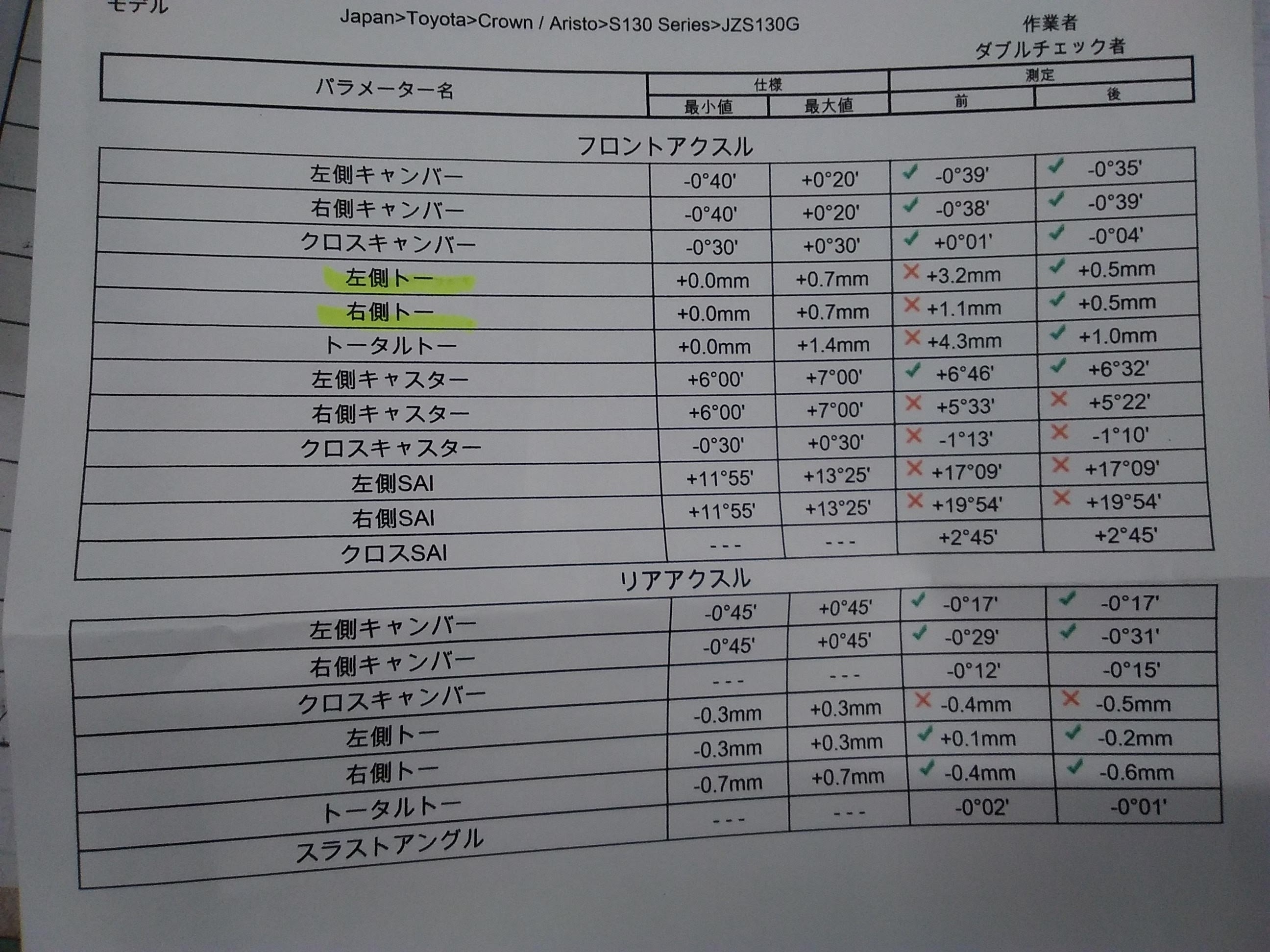 130系クラウン✖アライメント調整