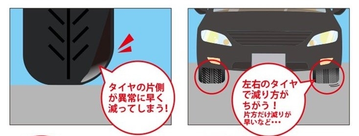 ●タイヤの片減りを抑えてタイヤの寿命が伸びる
