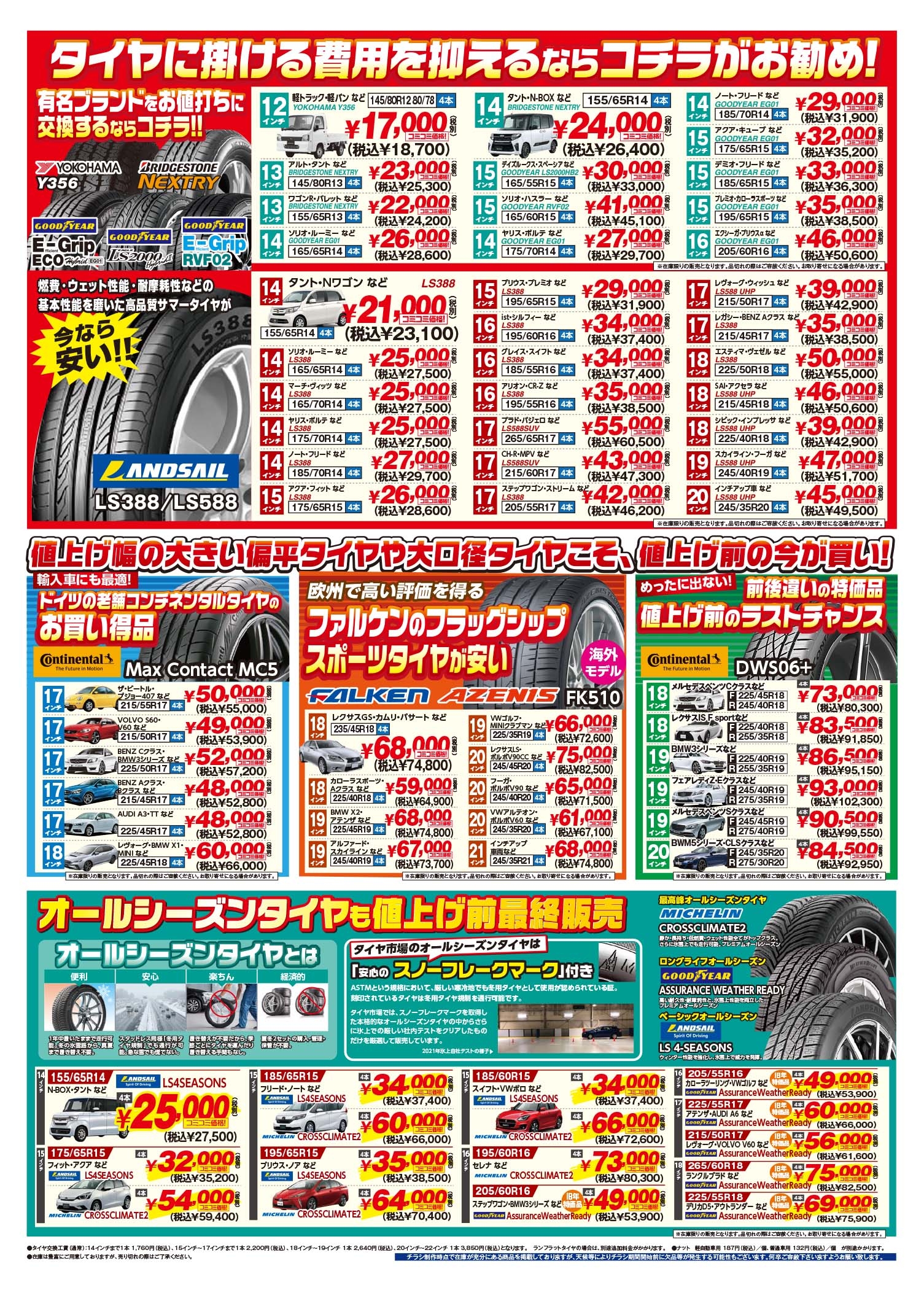4月から、タイヤ各社メーカーが値上がりを発表しております。