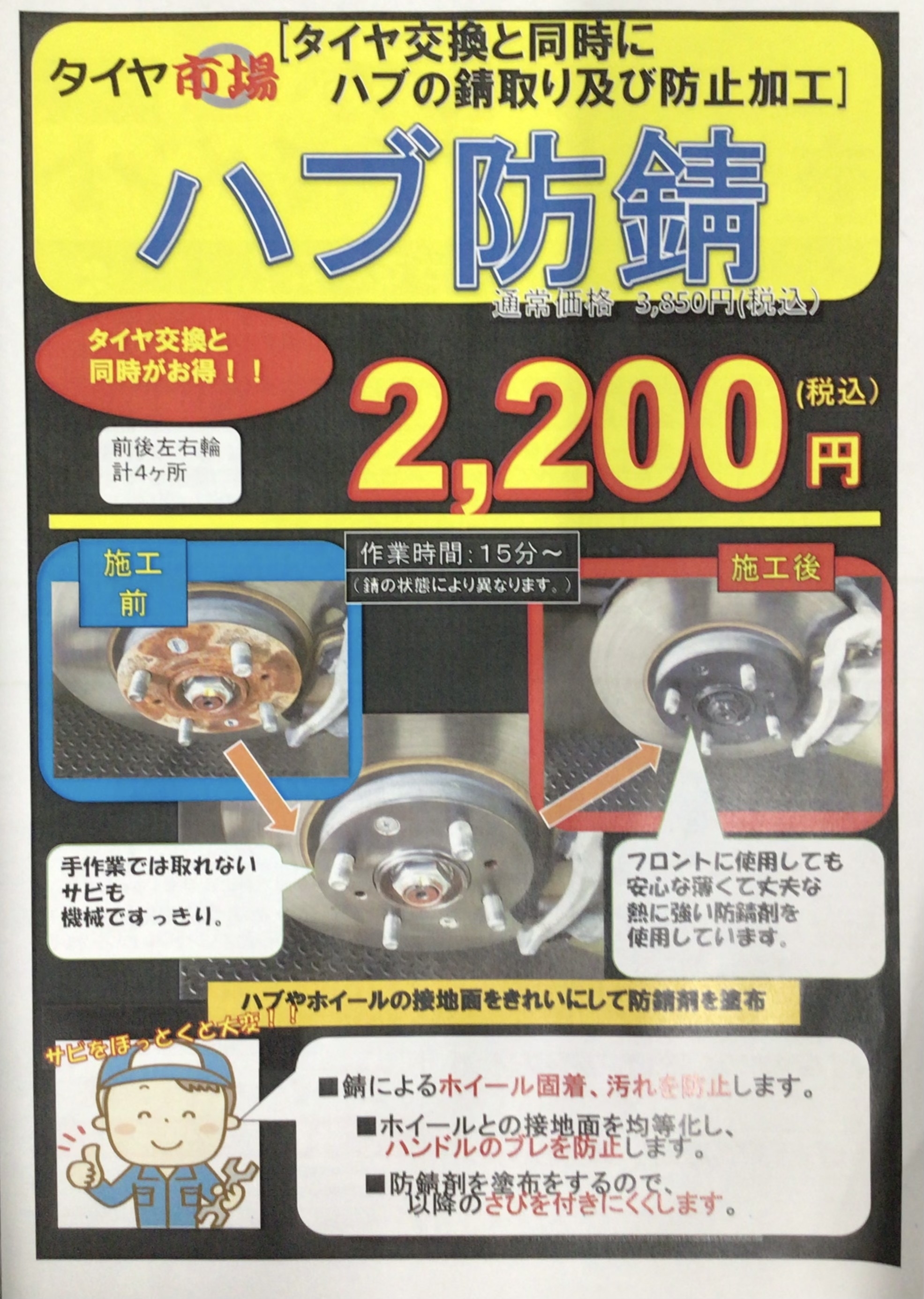 スタッドレスのホイールは特に塩害による塗装剥げが激しいので一度ご確認をオススメいたします。