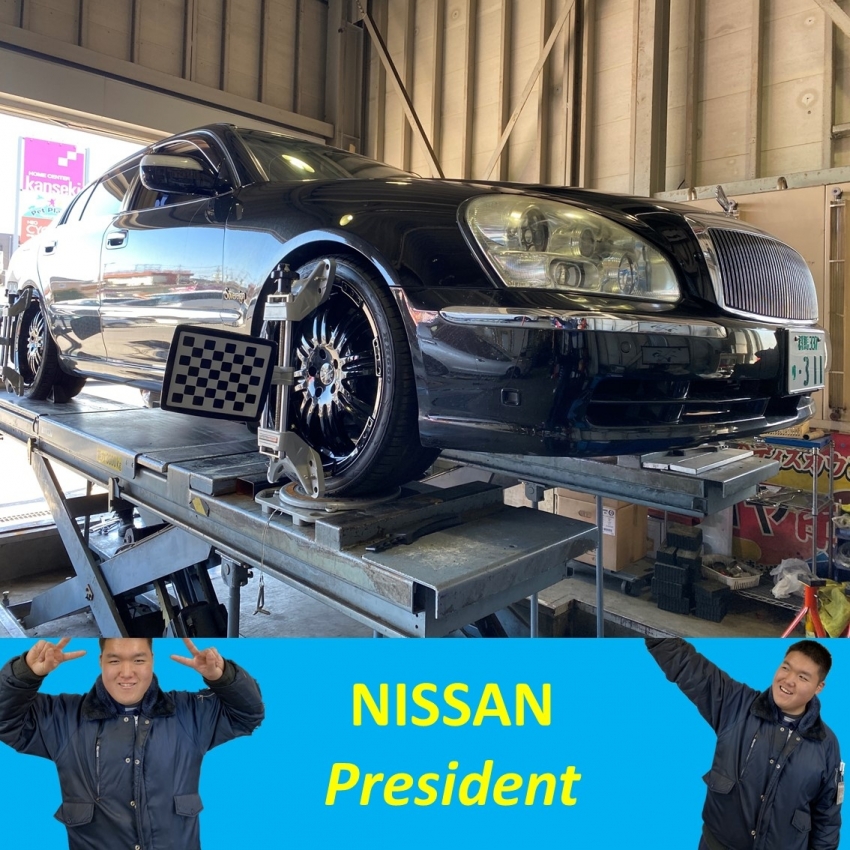 日産Presidentソブリン×4本交換&アライメント調整
