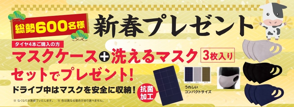 タイヤ4本ご購入のお客様にはマスク先着プレゼント中!!!