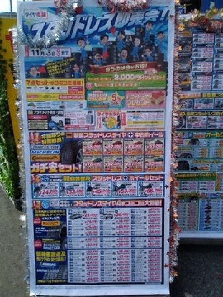 11月3日までの期間開催していますのでスタッドレスタイヤ、