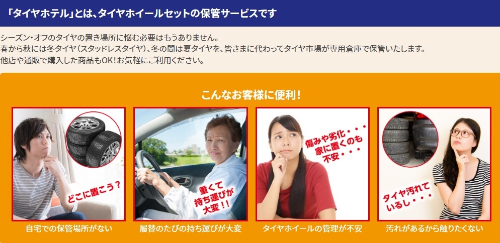 タイヤとホイールセットの預かりサービス。「タイヤホテル」おすすめサービスです!!