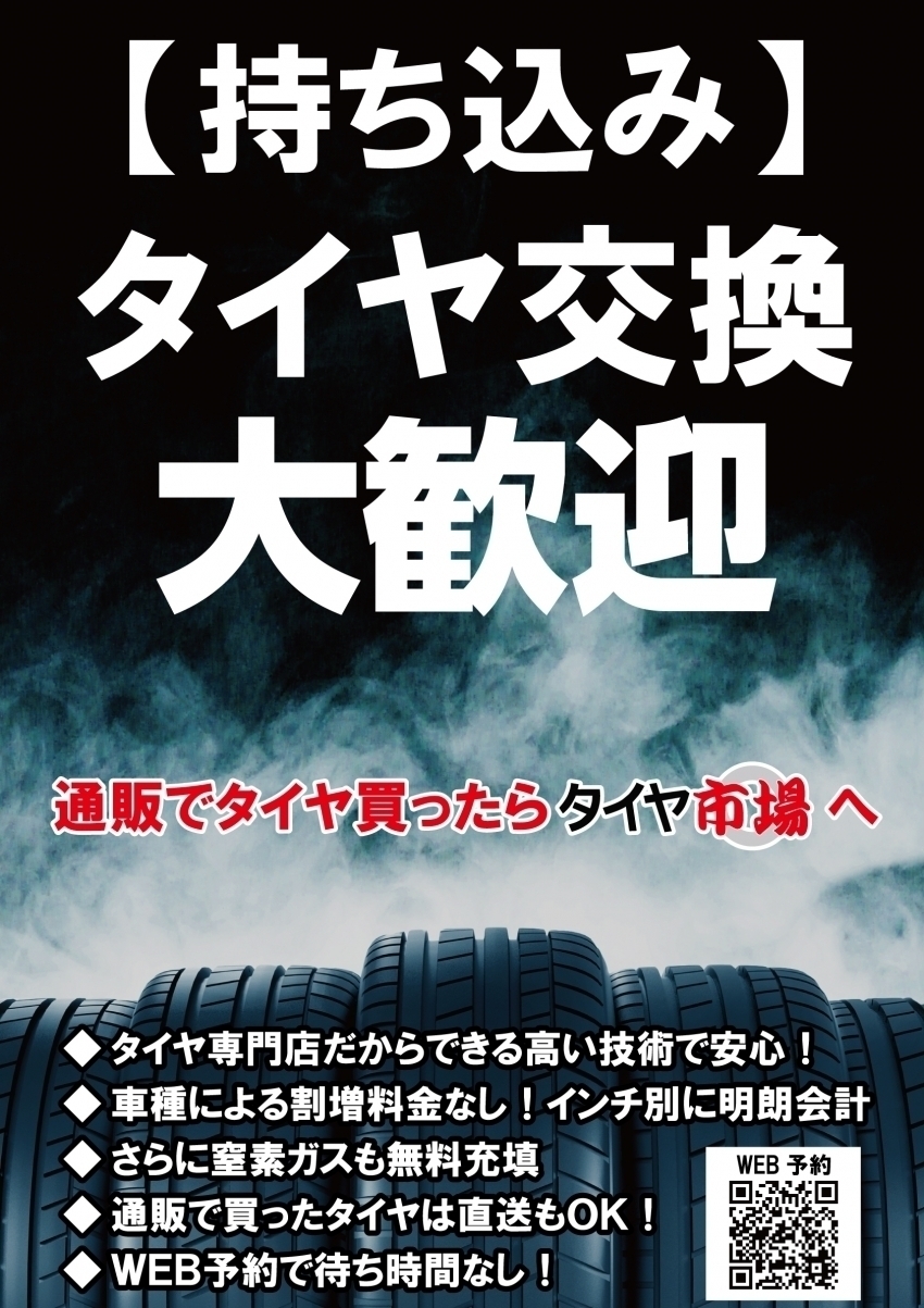 タイヤのみの持ち込み交換も大歓迎ですのでお気軽にお問い合わせください!!