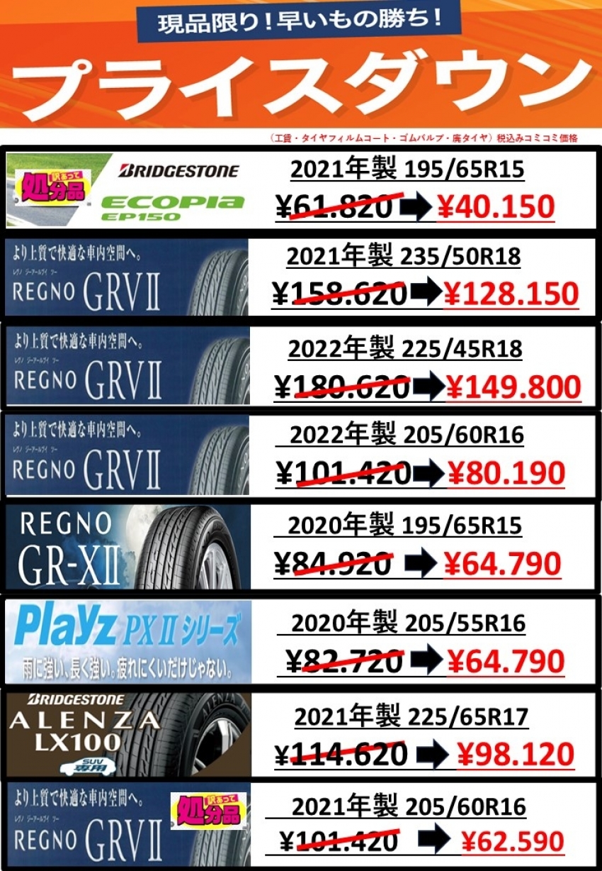 ・急遽タイヤが欲しい方