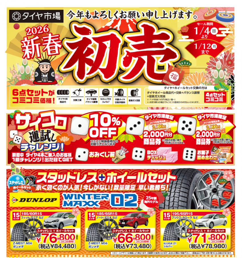 残り5日間 1月12日まで 2026年 新春初売り開催中!!