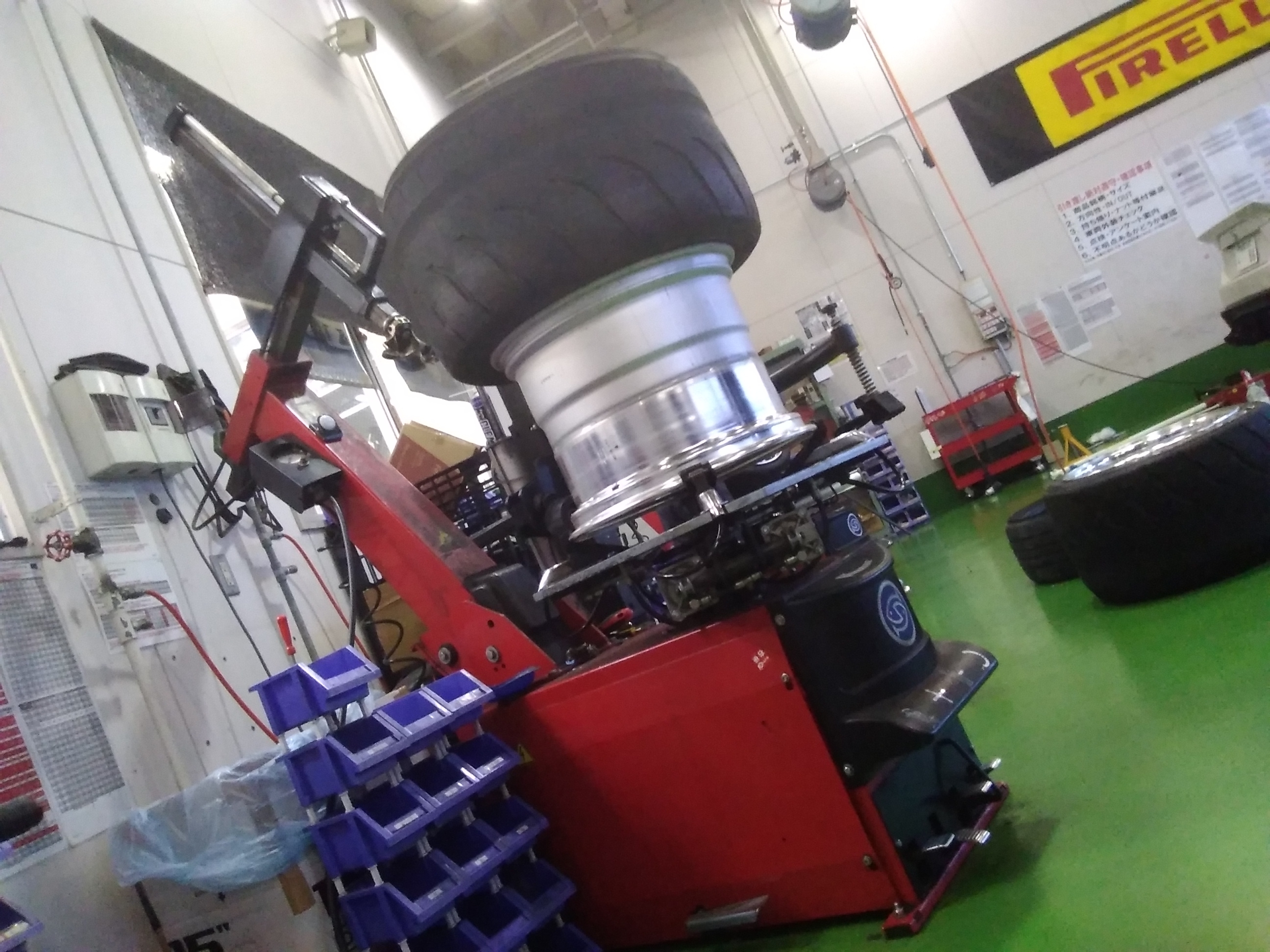ホイールから一度タイヤを外してin側とout側を反転させて再度組み付ける作業