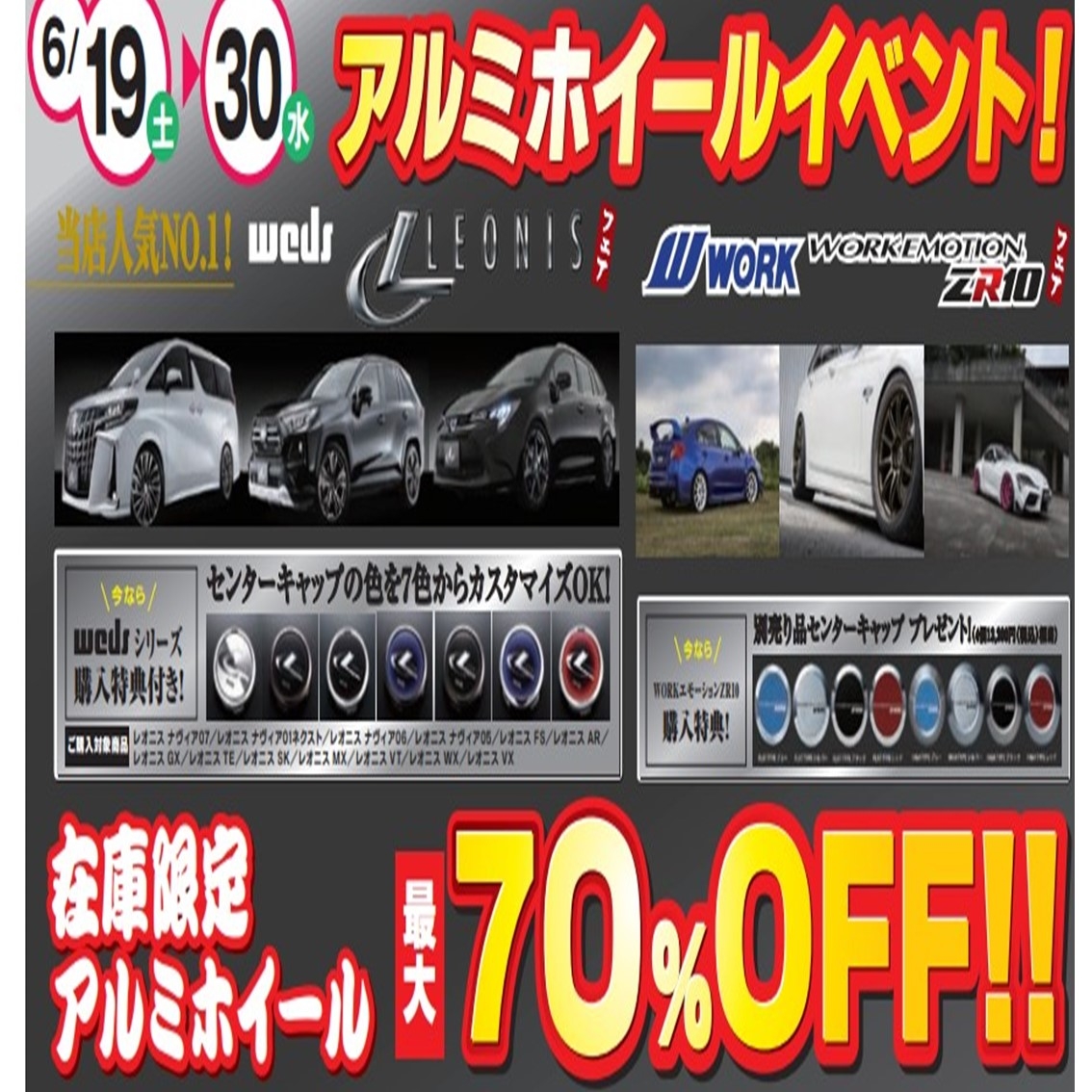 只今、アルミホイールイベント開催中!