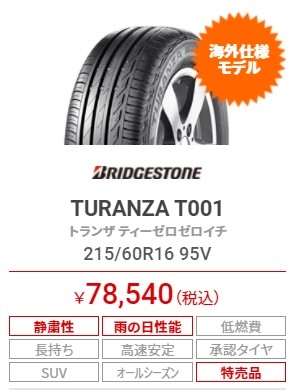 215/60R16  ヴェゼルやマークX クラウンに ブリヂストン