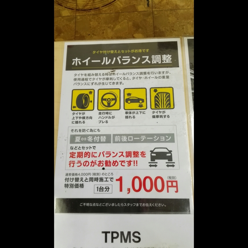 タイヤ交換の際にバランス調整をおすすめしてます(*'ω'*)