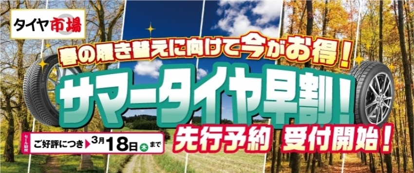 お得な期間中にサマータイヤをタイヤ市場で!