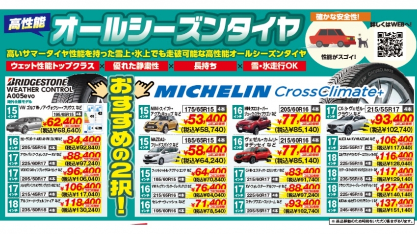 オールシーズンタイヤおすすめ!メーカーも豊富、お取り寄せも可能!
