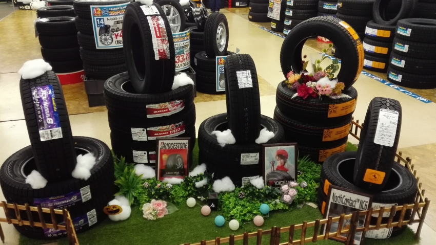 売場をスタッドレスタイヤメインに変えました。
