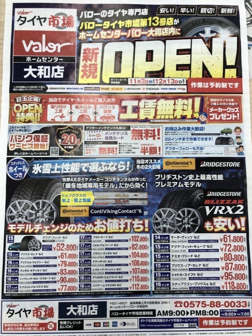 バローのタイヤ専門店 バロータイヤ市場大和店OPEN!!