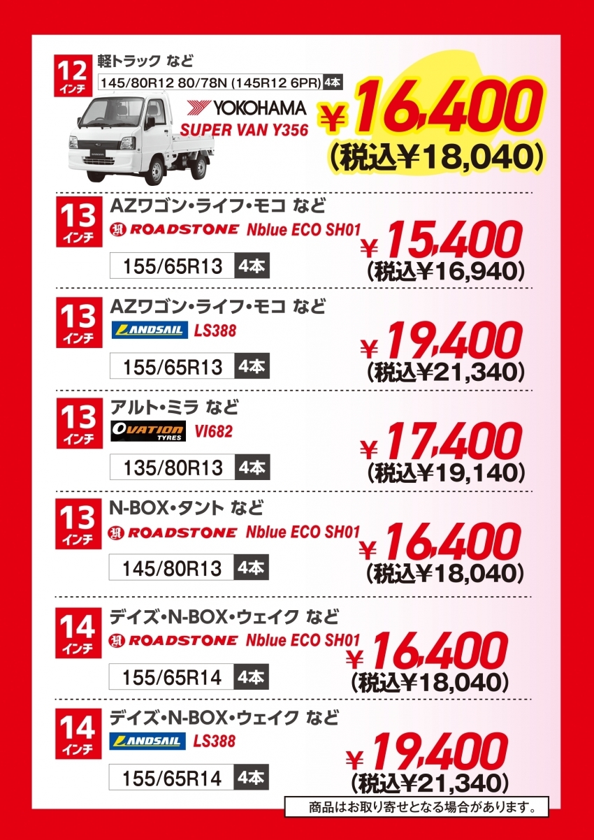 最大、2万円以下のタイヤが買えちゃいます!!