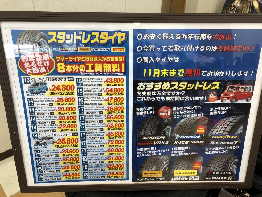 当店では旧年製造のスタッドレスタイヤが、