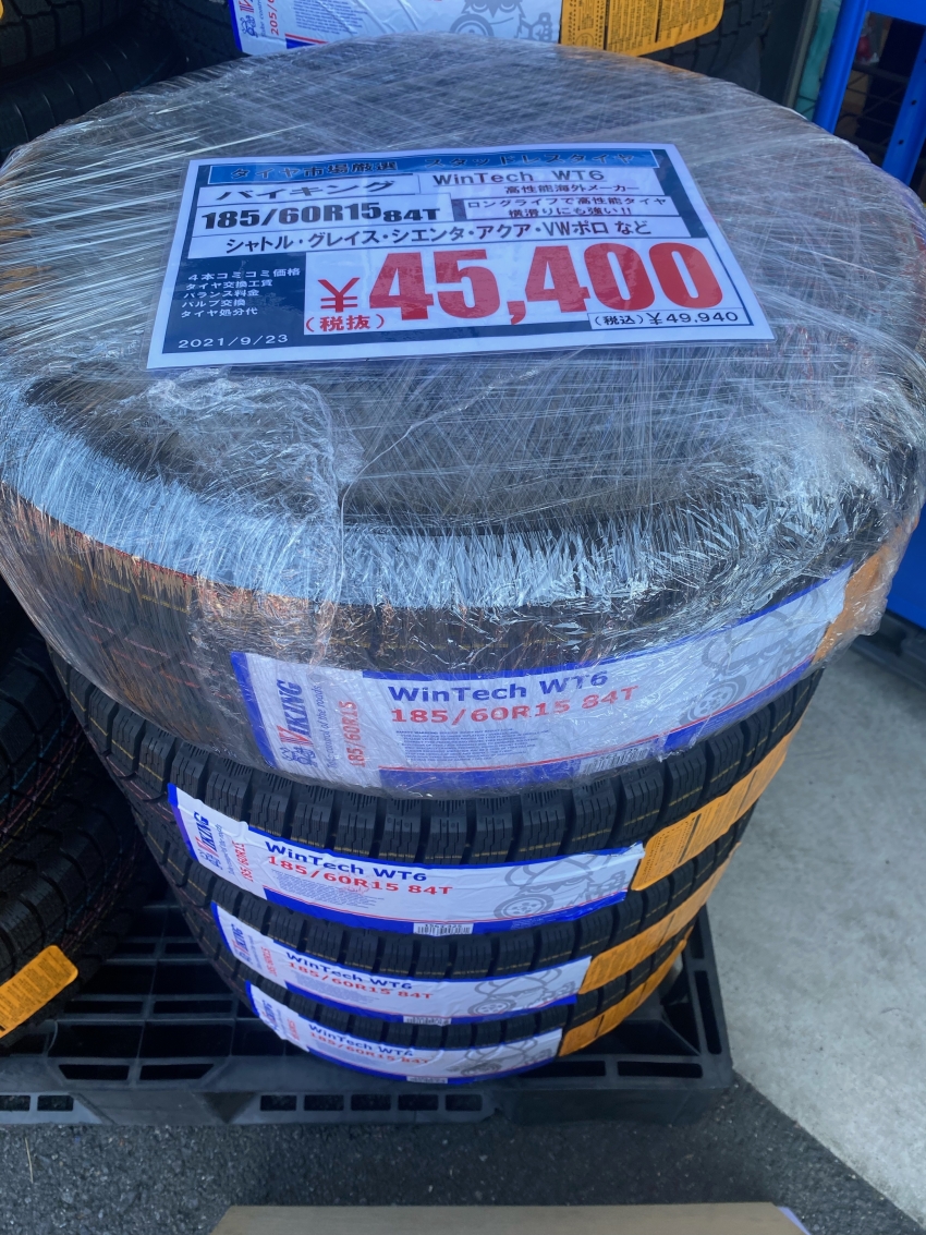 スタッドレスタイヤ、大変お安くなっております!