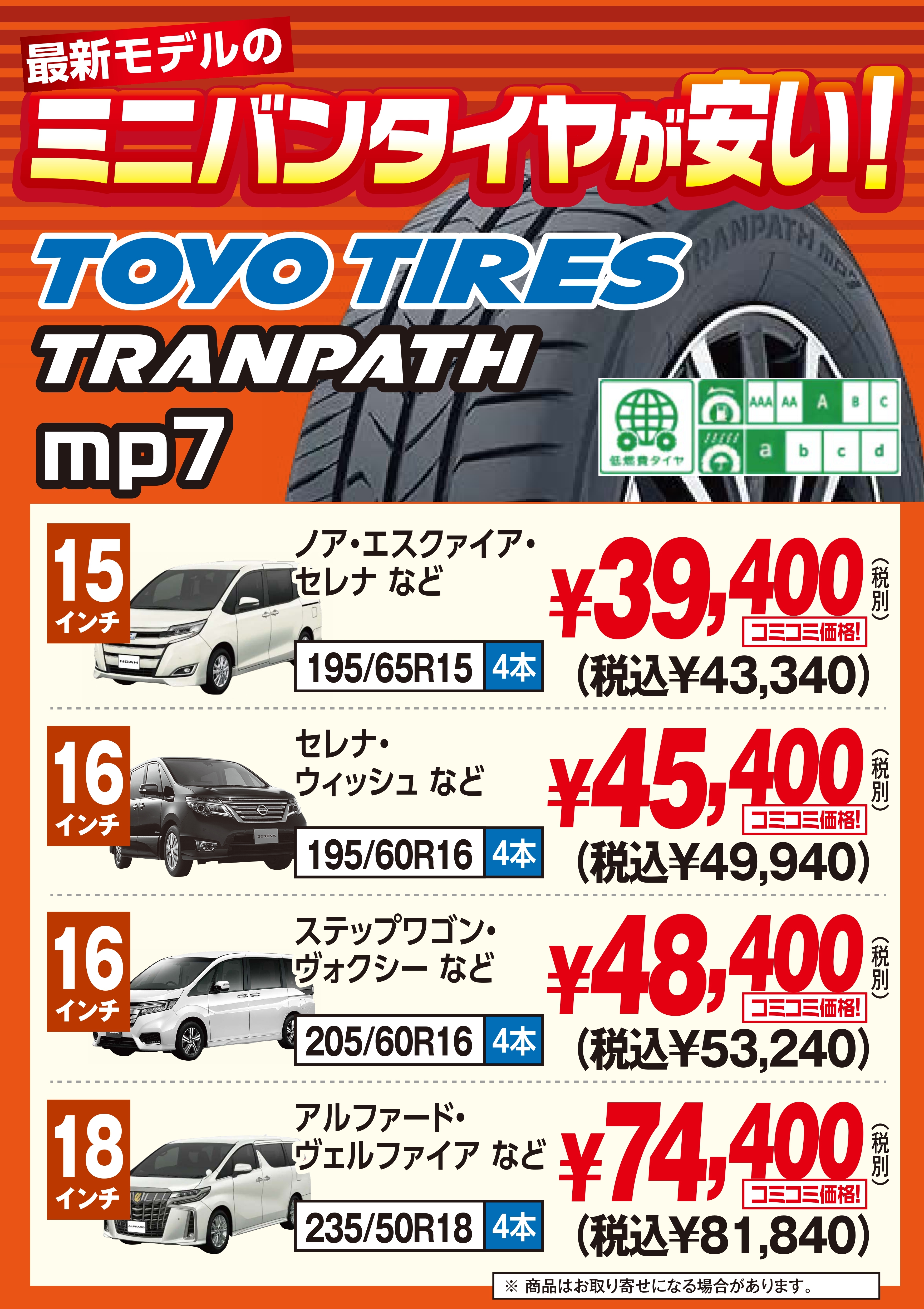 最新モデルのミニバンタイヤが安い‼