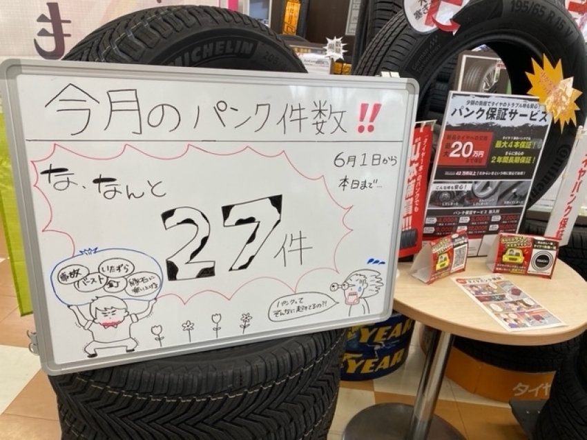 タイヤ市場足利店では、今月のパンク件数を掲示しています!!