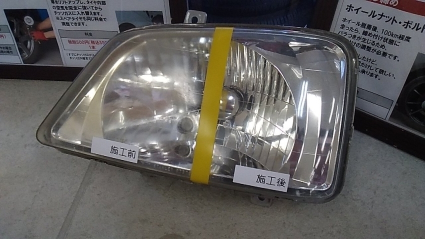 タイヤ市場足利店では、ヘッドライトの汚れを綺麗に出来る作業をやっております!